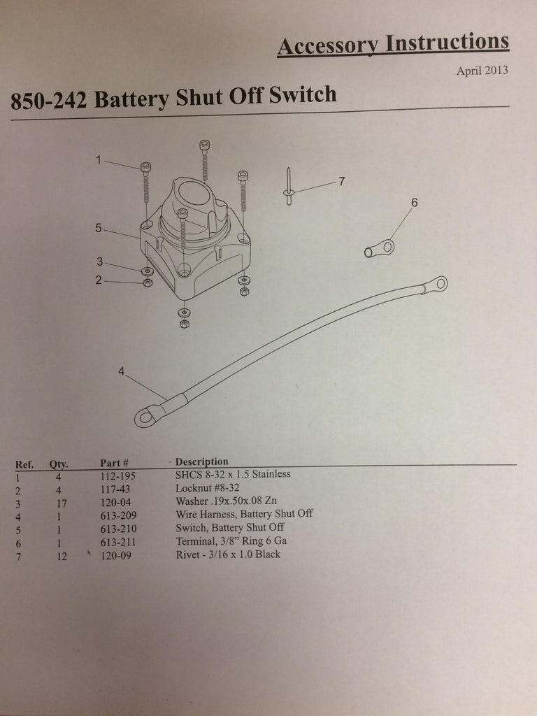 BATTERY SHUT OFF, SWITCH ACC ( 850-242 )